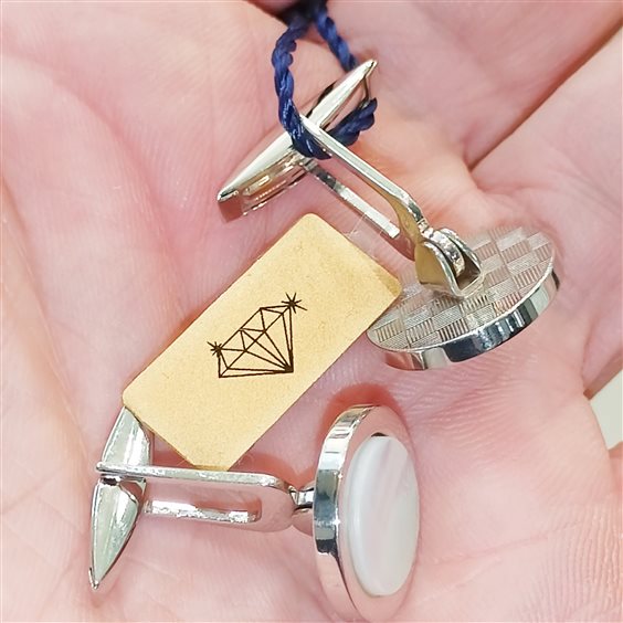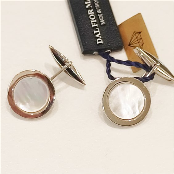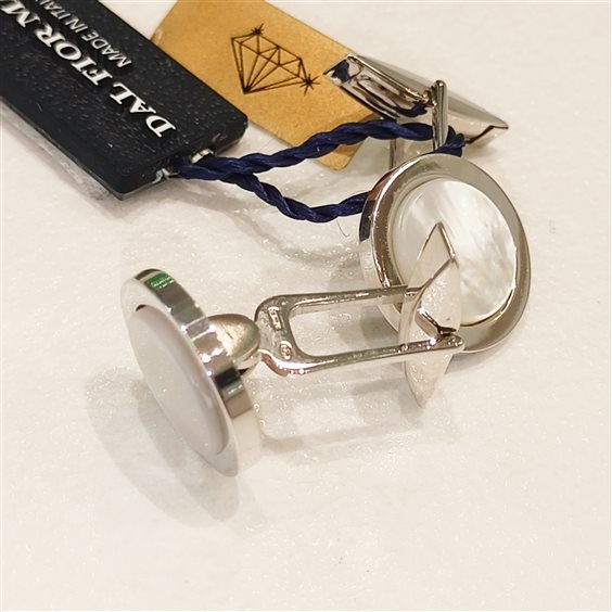 ELEGANTI GEMELLI IN ARGENTO DALLA FORMA ROTONDA CON PIETRA MADREPERLA BIANCA.
