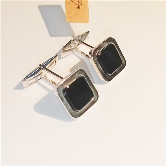 ELEGANTI GEMELLI IN ARGENTO DALA FORMA QUADRATA CON PIETRA ONICE,