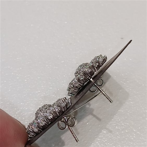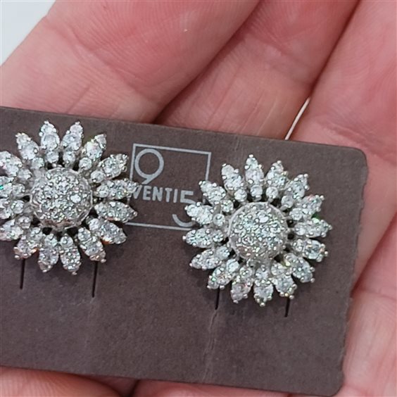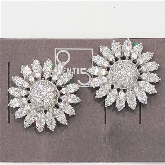 ELEGANTI E PREZIOSI ORCCHINI IN ARGENTO CON ZIRCONI INCASSATI A GRIFFE. FANTASIA FIORE MARGHERITA. CHIUSURA CON PERNO E FARFALLINA.