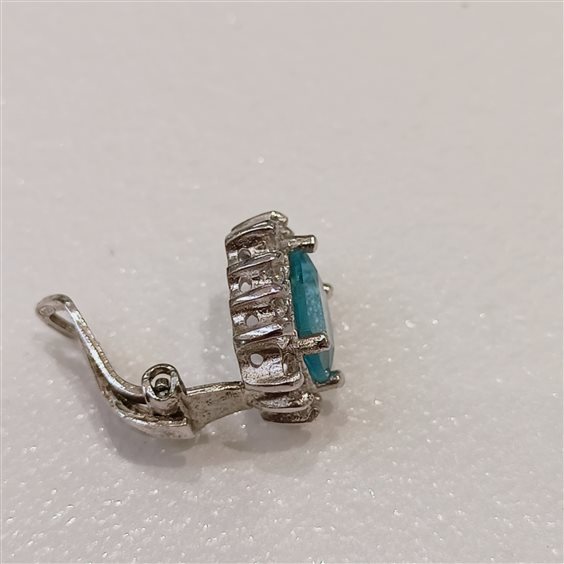 ELEGANTI E PREZIOSI ORCCHINI IN ARGENTO CON CRISTALLO COLOR AZZURRO. FANTASIA MODELLO "KATE" CON PIETRA RETTANGOLARE . ZIRCONI INCASSATI A GRIFFE SU TUTTO IL CONTORNO. CHIUSURA CON CLIP.