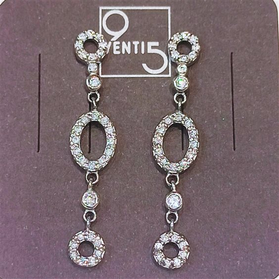 orecchini pendenti con zirconi incassati a griff con elementi circolari e ovali