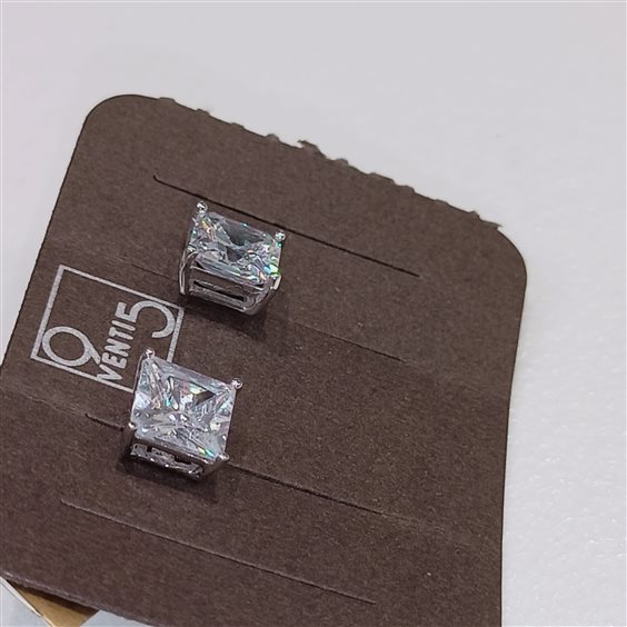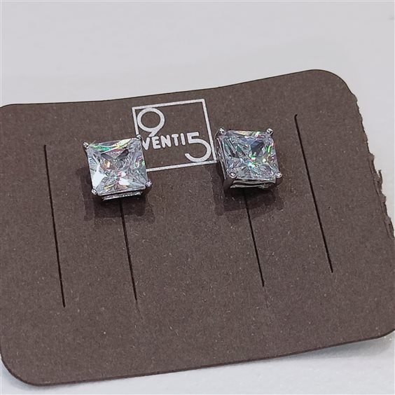 orecchino paletto zirconio qubik griff bianco e molto luminoso. 8 mm quadrato. orecchino anche per uomo.