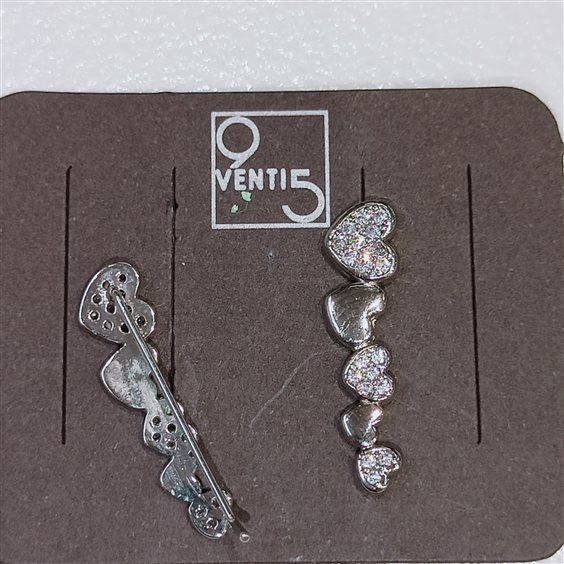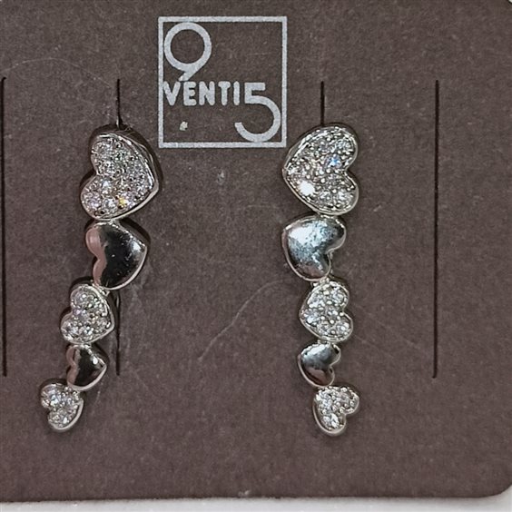 MODERNI ED EEGANTI ORECCHINI IN ARGENTO E ZIRCONI INCASSATI A GRIFFE. FANTASIA A CUORI LISCI E CON PIETRE IN LUNGHEZZA CON PERNO AD AGO APERTO DA SIMULARE MOLTEPICI FORI SU UNICO LOBO.