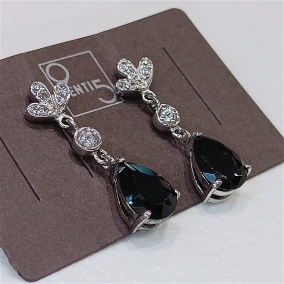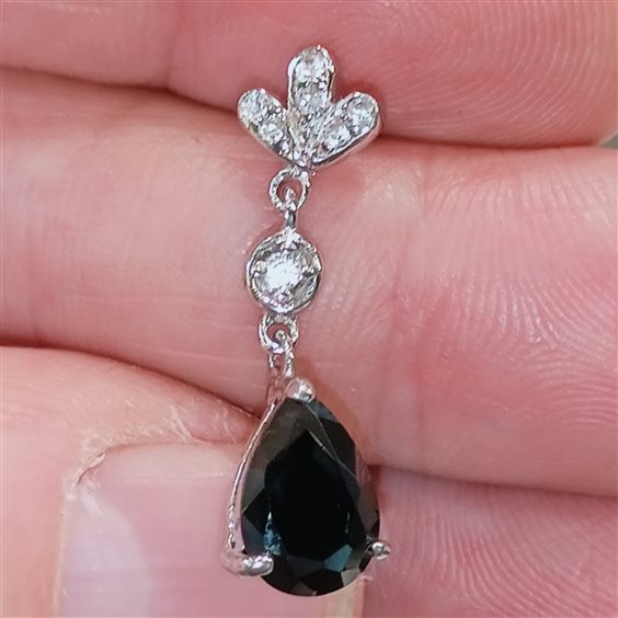 orecchini in argento 925 italia pendenti cm2.5 con cristallo blu zaffiro e zirconi. l'orecchino una volta indossato si muove al tuo movimento accanto a te.