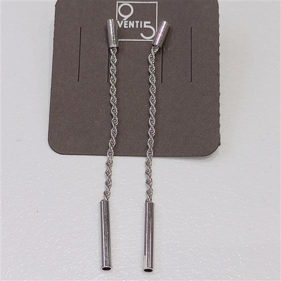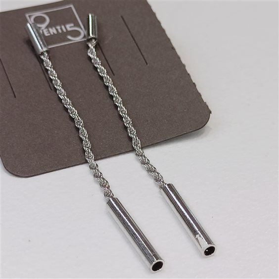 ORECCHINI MODERNI IN ARGENTO CON CATENA A CORDA E CILINDRO LUCIDO NEL FINALE.