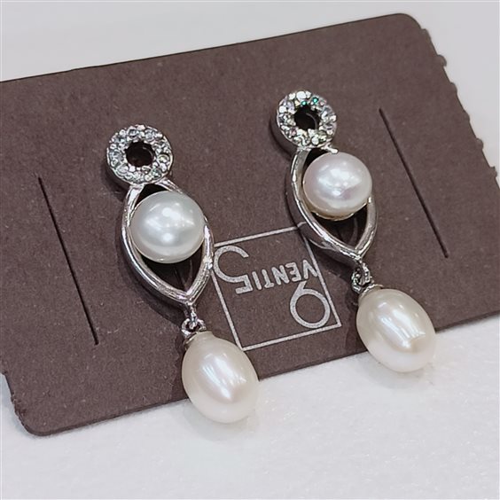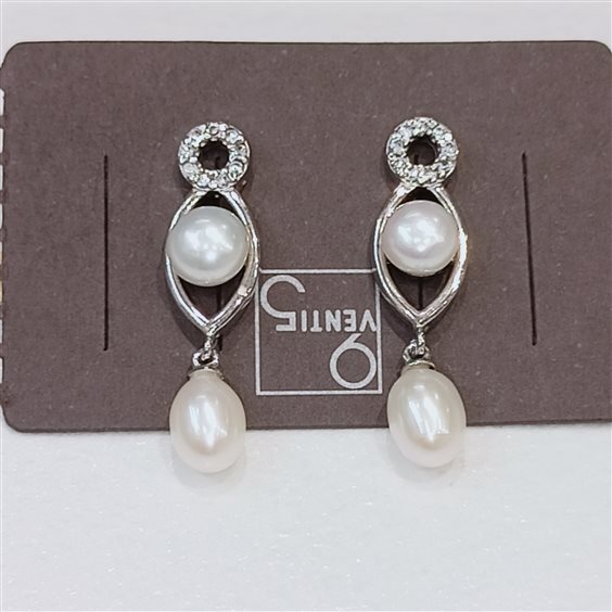 orecchini pendenti con perla a due elemnti rotondo e ovale lunghezza totale 3 cm