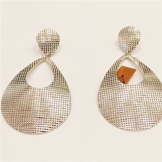 Orecchini pendendi a forma di goccia in argento lavorato a piccoli pallini in rilievo su tutta la superficie.