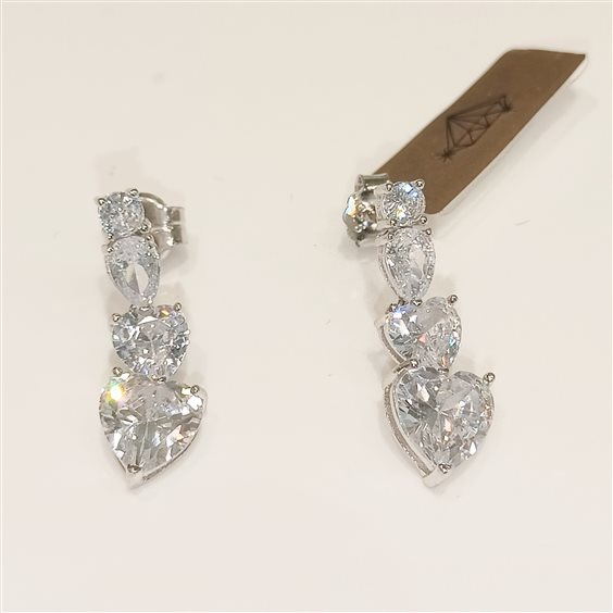 Eleganti orecchini in argento e zirconi a forma di piccoli cuori incassati a griffe .