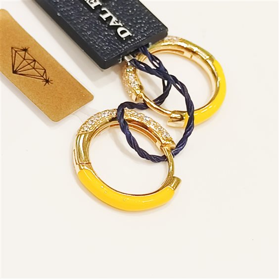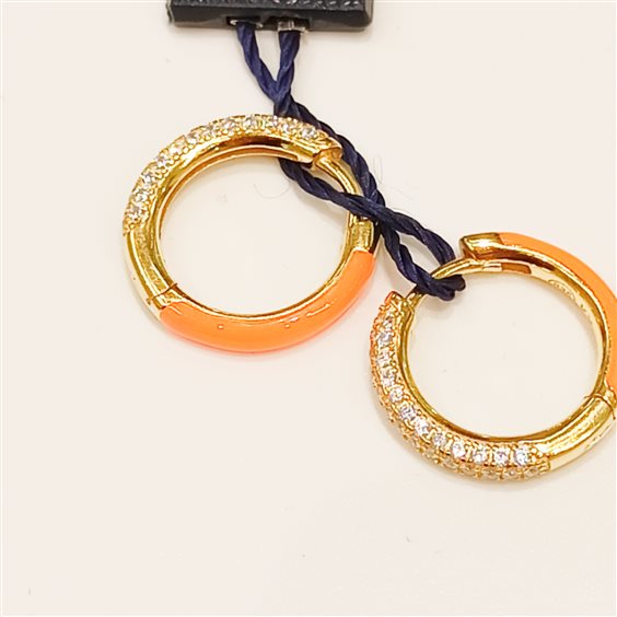 ORECCHINI IN ARGENTO COLOR ORO CON PARTE FRONTALE IN ZIRCONI INCASSATI A GRIFFE, RETRO IN SMALTO COLORATO. DISPONIBILITA DI COLORE ARANCIO - GIALLO - AZZURRO - FUCSIA.