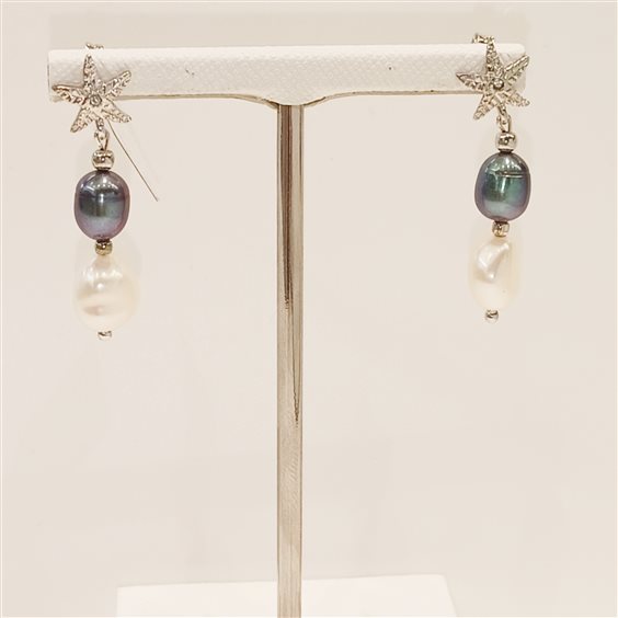 ELEGANTI ORECCHINI IN ARGENTO PENDENTI CON PERLE TAHITI BICOLOR.