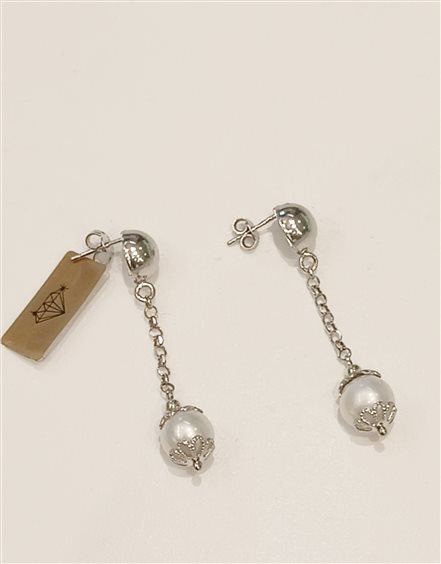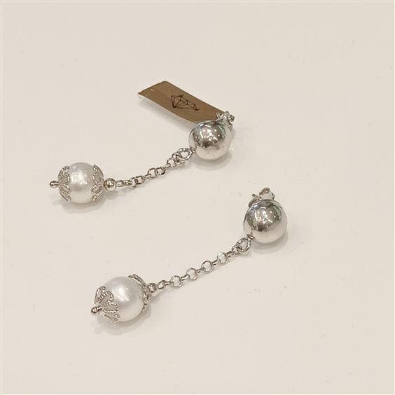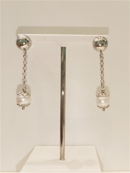 eleganti orecchini in argento pendenti con perla bianca.