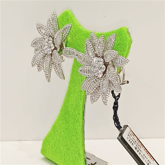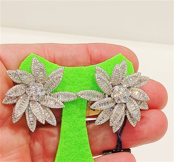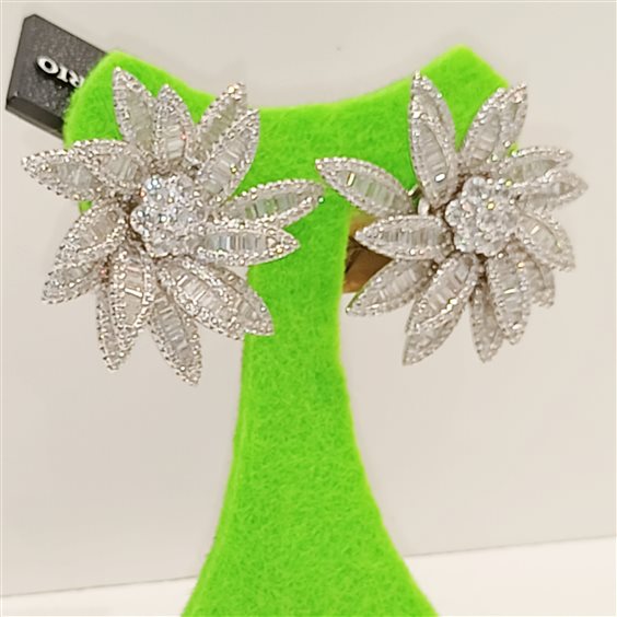 ELEGANTI ORECCHINI A FORMA DI FIORE IN ARGENTO E ZIRCONI INCASSATI A GRIFFE.