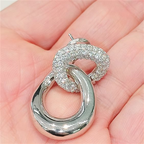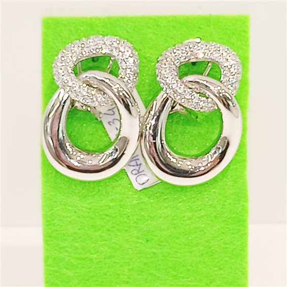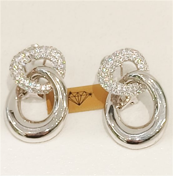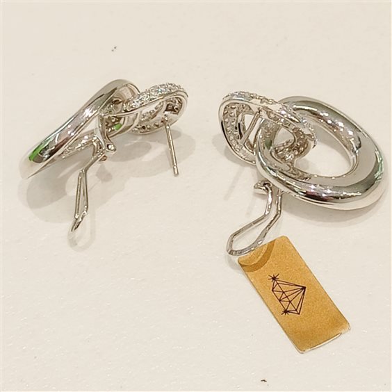 ELEGANTI ORECCHINI AL LOBO CON ANELLO A CATENA PENDENTE IN ARGENTO E ZIRCONI INCASSATI A GRIFFE.