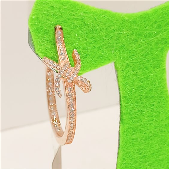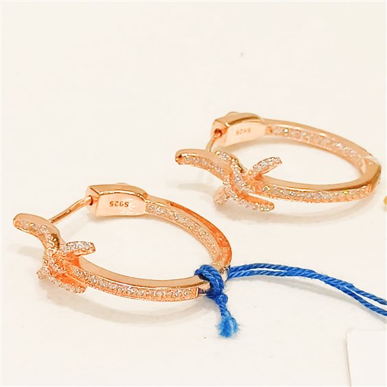 ELEGANTI ORECCHINI A CERCHIO IN ARGENTO ROSA CON ZIRCONI INCASSATI A GRIFFE.