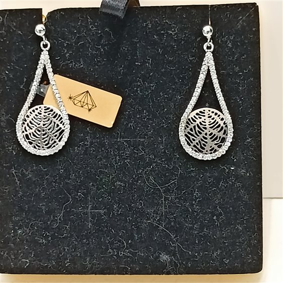 ELEGANTI ORECCHINI PENDENTI IN ARGENTO A FORMA DI GOCCIA CON ZIRCONI INCASSATI A GRIFFE.