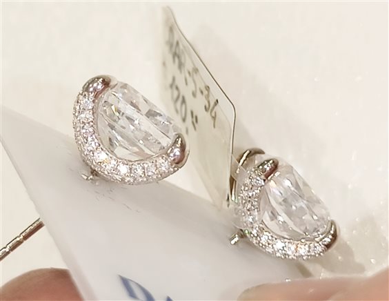 LUMINOSO ORECCHINO A LOBO CON GRANDE ZIRCONE 9 MM. INCASSATO A GRIFFE.