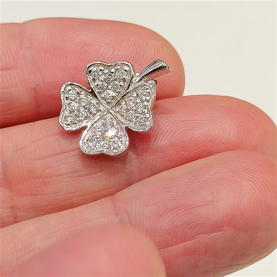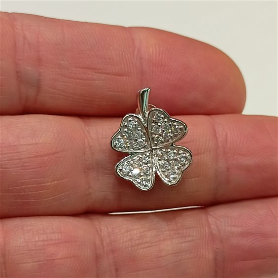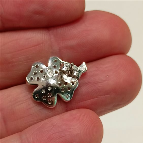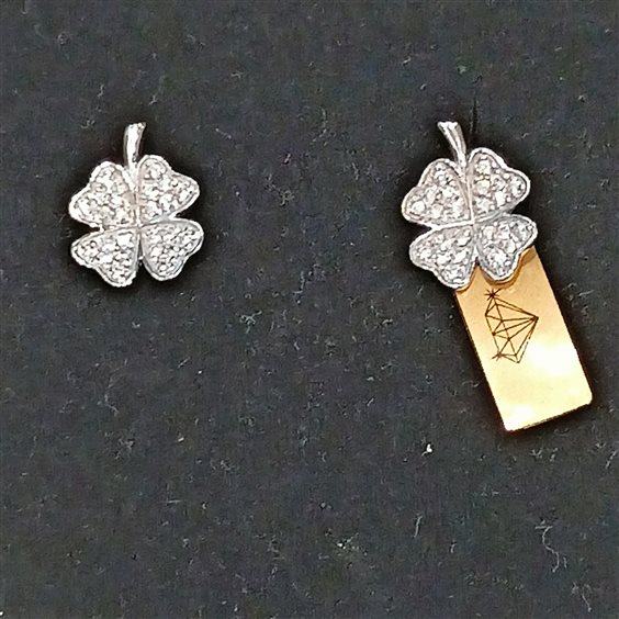 Elganti orecchini in argento a forma di quadrifoglio con zirconi bianchi incassati a griffe.