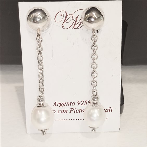 ELEGANTE ORECCHINO IN ARGENTO. CON PERLA PENDENTE