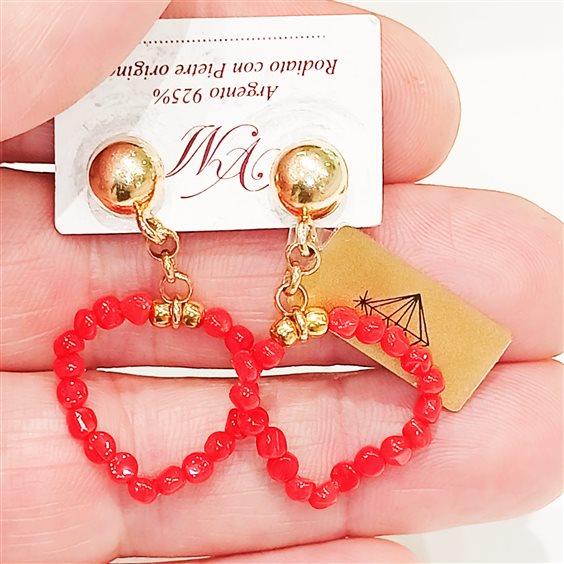 BELL'ORECCHINO IN ARGENTO COLOR ORO CON PIETRE CORALLO A CERCHIO PENDENTE.