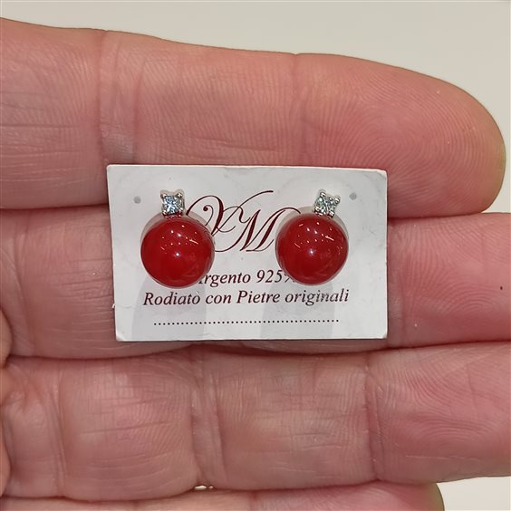ORECCHINI AL LOBO, PERNO E FARFALLA IN ARGENTO CON PIETRA SFERICA IN ONICE E ALLA BASE UN PICCOLO ZIRCONE INCASSSATO A GRIFFE.