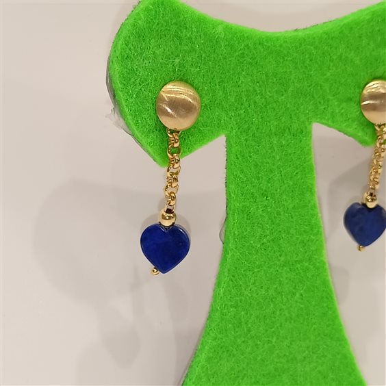 ELEGANTI ORECCHINI IN ARGENTO DORATO CON CATENINA PENDENTE DUE lAPIS A FORMA DI CUORE.