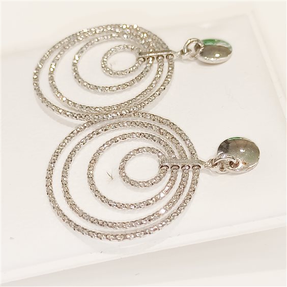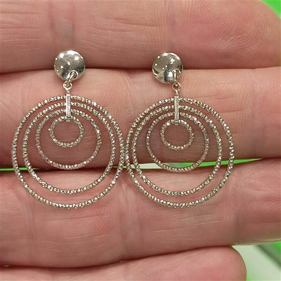 ELEGANTE ORECCHINO PENDENTE, FANTASIA DI CERCHI DI VARIE DIMENSIONI LAVORAZIONE A SFACCETTATURA.