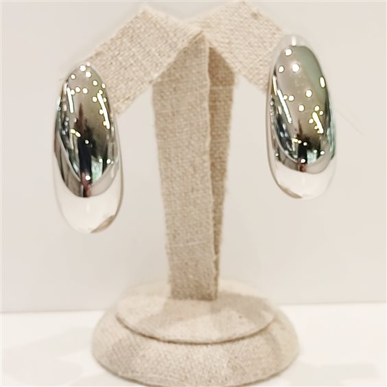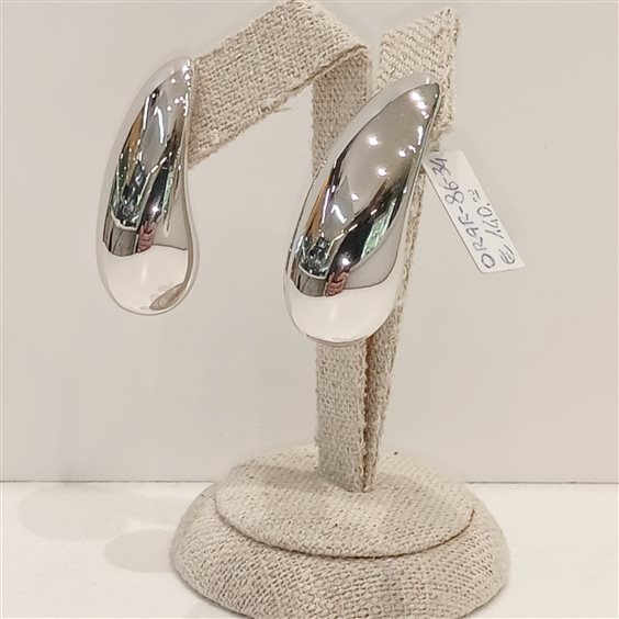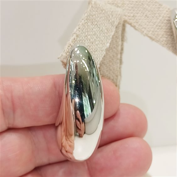 MODERNO ORECCHINO IN ARGENTO RODIATO LUCIDO, MODELLO TIPO "BOTTEGA VENETA", GOCCIA IN ELETTROFORMATURA VUOTA CON PERNO E FARFALLA AL LOBO.