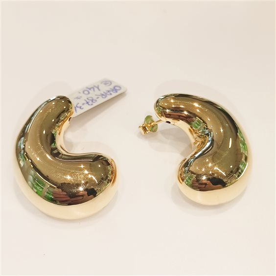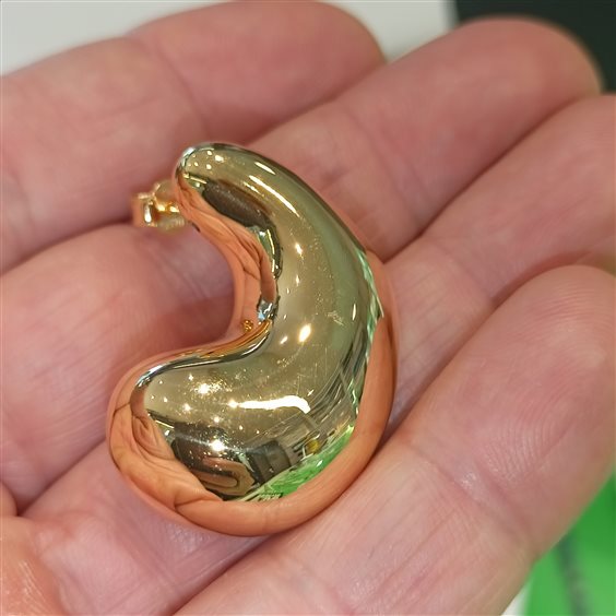 MODERNO ORECCHINO IN ARGENTO DORATO LUCIDO, MODELLO BOTTEGA VENETA, GOCCIA IN ELETTROFORMATURA VUOTA CON PERNO E FARFALLA AL LOBO.