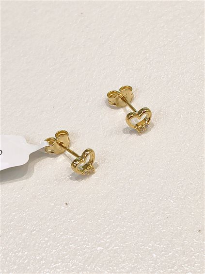 GIOVANE E LUMINOSO ORECCHINO A FORMA DI CUORE CON PICCOLI ZIRCONI TAGLIO BRILLANTE, INCASSATI A GRIFFE.