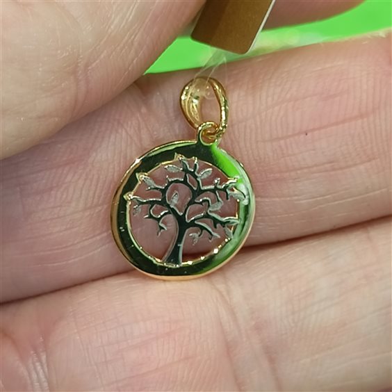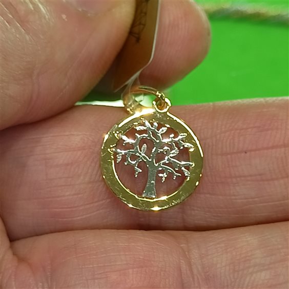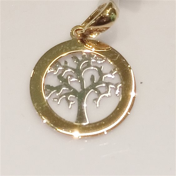 BELLISSIMO PENDENTE ROTONDO IN ORO GIALLO CON ALBERO DELLA VITA A CENTRO IN ORO BIANCO.