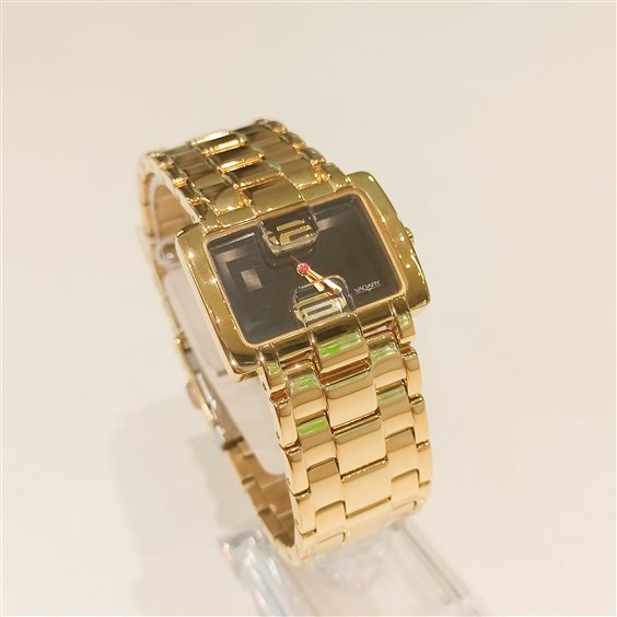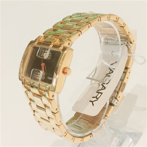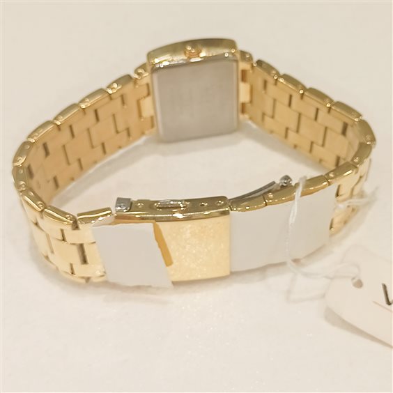 OROLOGIO VAGARY TEMPO 35MM Movimento al quarzo, tempo. Cassa in acciaio con pietre applicate. Bracciale in acciaio con chiusura di sicurezza. WR 5 bar LAMINATO GOLD