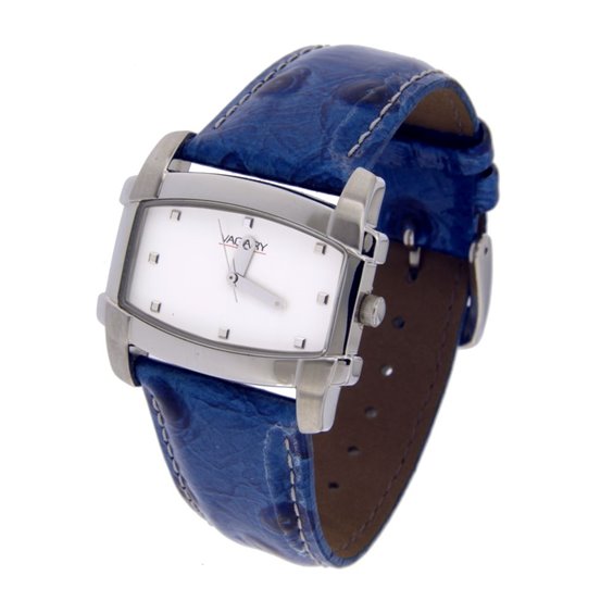 Orologio Vagary da donna al quarzo, cassa rettangolare, quadrante bianco, cinturino pelle blu.