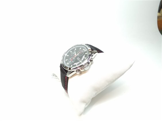 Vagary by Citizen orologio cronografo da polso. Cassa in acciaio 42 mm. Quadrante nero. 3 contatori, datario, sfere luminescenti. Cinturino in tessuto nero con impunture rosse con fibbia ad ardiglione. Water resistant 10 atm. INDOSSATO FORTE SENTORE DI MOTIVI SPORTIVI LEGATI ALL'ELEGANZA DEL NERO LE SUE DOTI DI ROBISTEZZA SI SENTONO SUBITO, AL PRIMO SGUARDO CI SI SENTE ATTRATTI