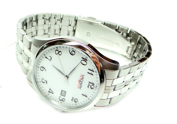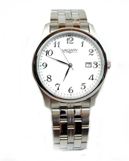 Orologio Vagary solo tempo, Movimento a quarzo. Cassa e fondello acciaio. Datario, Quadrante Bianco, Cinturino in Acciaio. Resistente all'Acqua 5 Atm. Vetro Minerale.