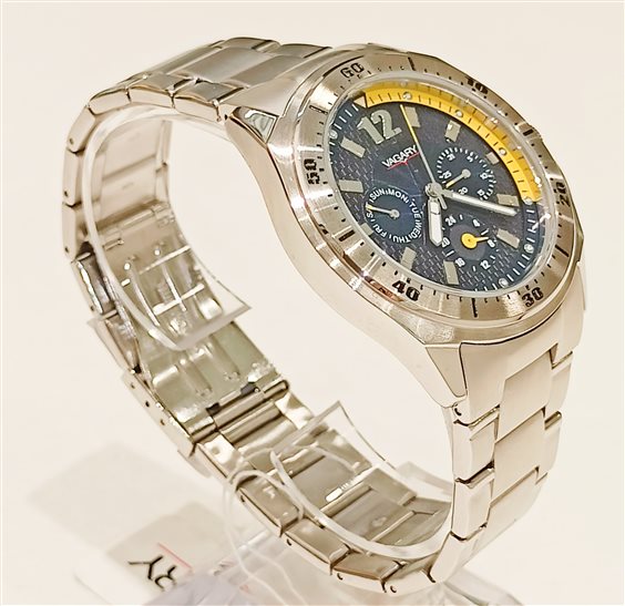 ACCIAIO VAGARY BY CITIZEN 42MM LEGGERO ROBUSTO , ALTA LEGGIBILITA', DATARIO, CHRONO, 100 METRI WR, FONDELLO A VITE. SFERE LUMINESCENTI. QUADRANTE NERO CASSA TOTALMENTE ACCIAIO .