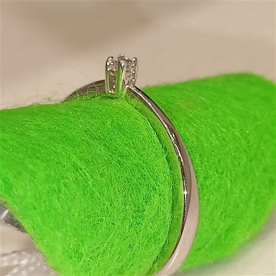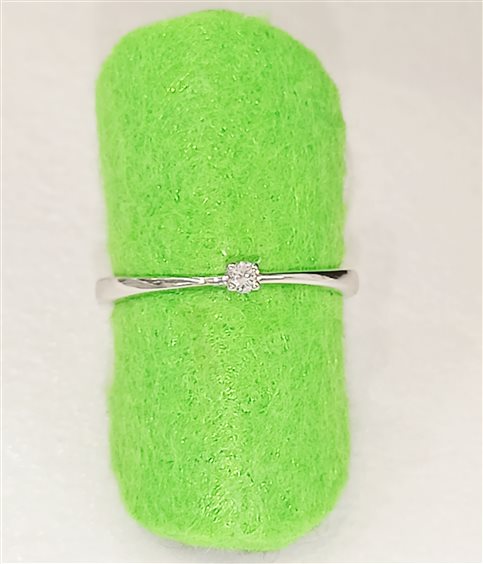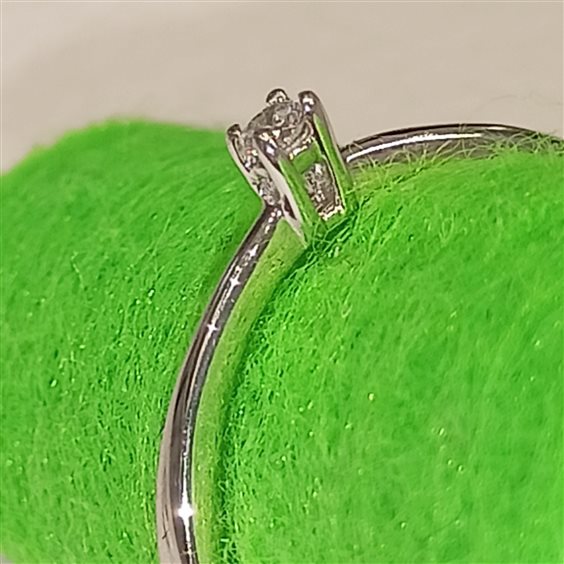 ELEGANTE ANELLO SOLITARIO IN ORO BIANCO CON DIAMANTE TAGLIO BRILLANTE SU CASTONE INCASSATO A GRIFFE.