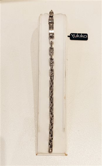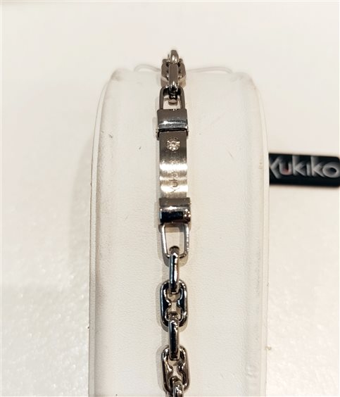 MODERNO BRACCIALE DA UOMO IN ACCIAIO A CATENA LARGA, PIASTRA SATINATA E ZIRCONE BIANCO.