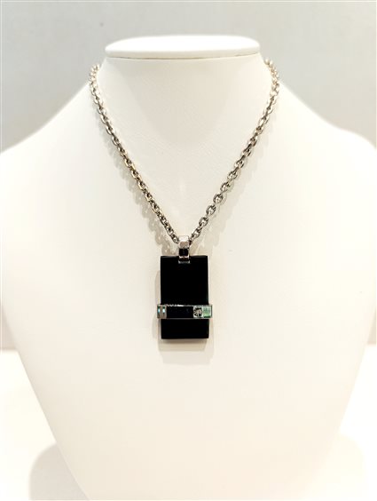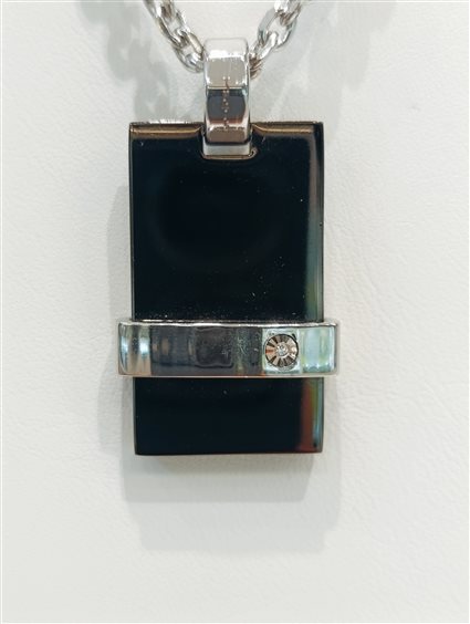 CATENA IN ACCIAIO RODIATO CON TARGA IN CERAMICA E BARRA TRASVERSALE IN ACCIAIO CON PICCOLO BR.